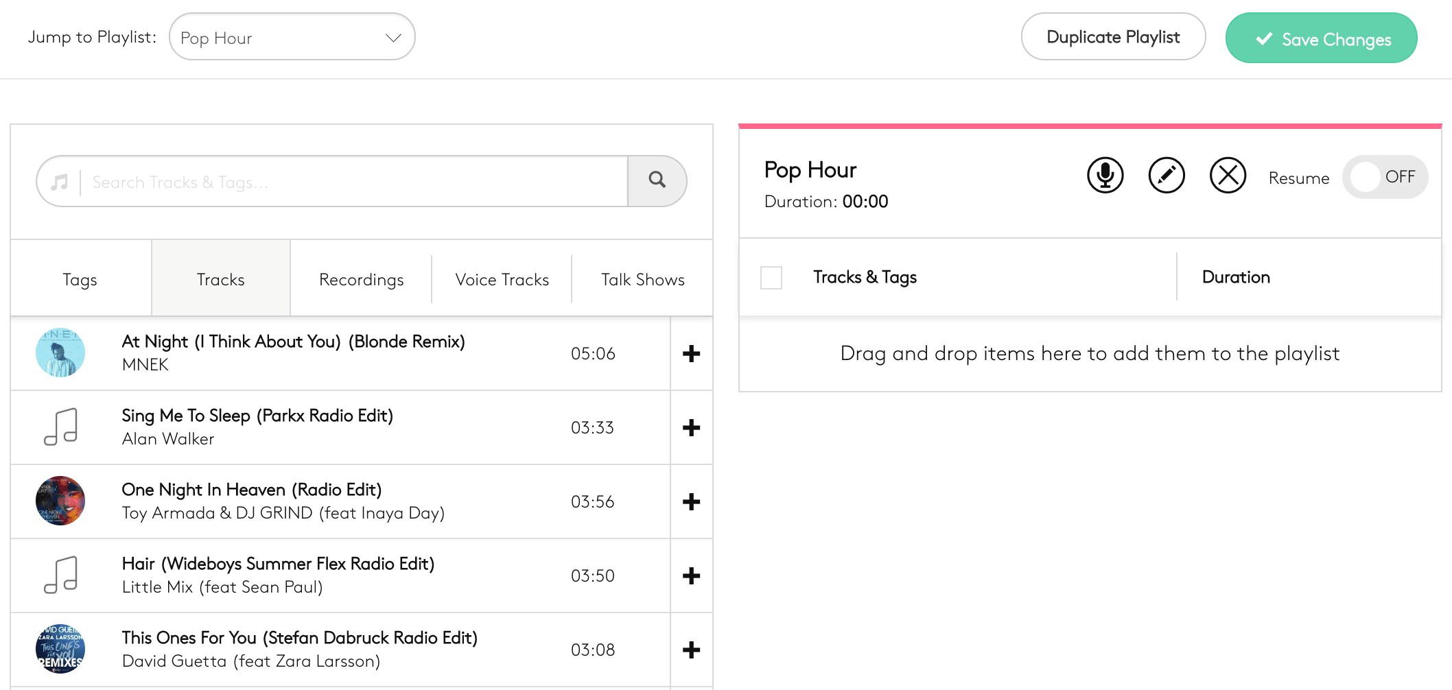 Playlists give your station structure. From hit songs to pre-recorded voice tracks, build and curate dynamic shows. Playlists can include:
