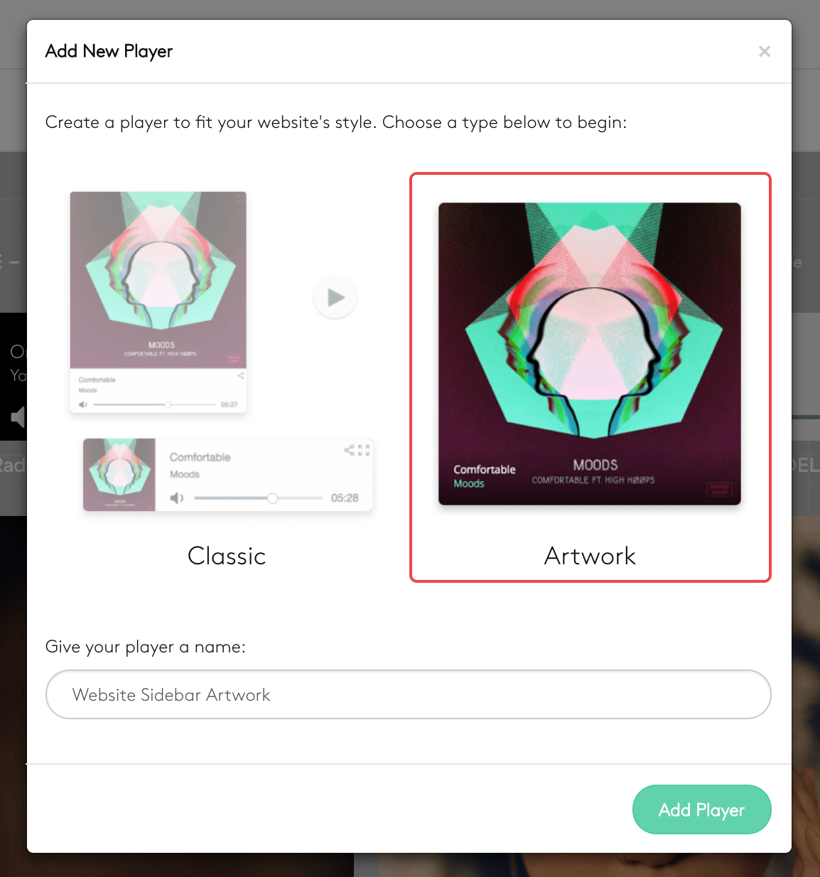 Once selected, give your player a name. This is a 'pet name' so you can identify it in your dashboard, e.g: 'Website Sidebar'.