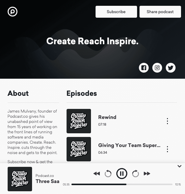 Podcast.co is a new way for you to share your content on-demand. Built by the Radio.co team with years of experience in the audio industry, Podcast.co is the best way for you to start a podcast, build a community, and spread your message further.