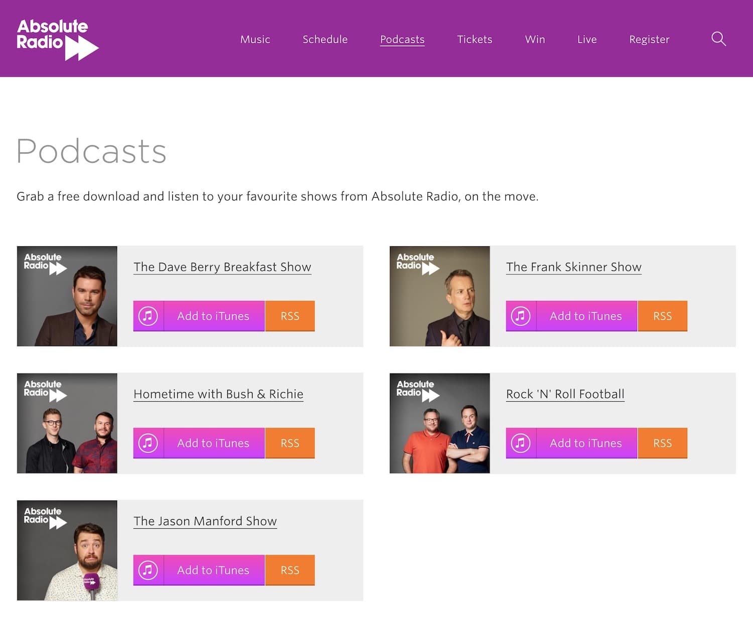 Save time and turn your existing radio content into podcasts. Converting shows into episodes reaches listeners that would otherwise miss-out. UK based station, Absolute Radio, repurposes their shows into podcasts, giving listeners the chance to catchup whenever.
