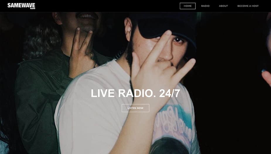 Sometimes, simplicity is key to designing a great website. No need to overload visitor’s first impressions with too much going on, which is where Samewave Radio comes in! Going for something simple but visually pleasing, Samewave chooses to get straight to the point rather than bog you down in unnecessary clutter, resulting in quite a dark look, but one that suits the station’s goals and aesthetics.