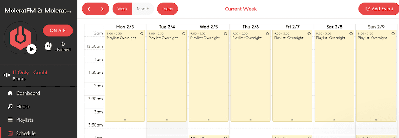 To schedule a live event, go to the Schedule in your Radio.co dashboard.