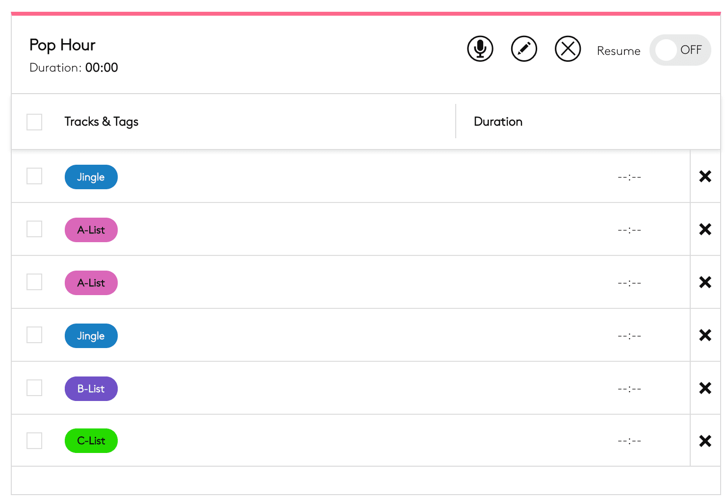 Playlists give your station structure. From hit songs to pre-recorded voice tracks, build and curate dynamic shows. Playlists can include: