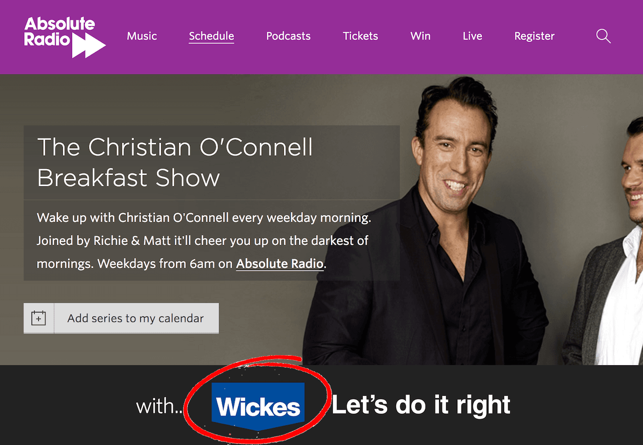 When you've gathered who your average listener is then you can start to think about what they might want. It's then a stones throw away to figure out who your potential advertisers might be. Take Absolute Radio for example as mentioned in How Internet Radio Stations Make Money. Their average listener base are older and homeowners, so they advertise DIY products.