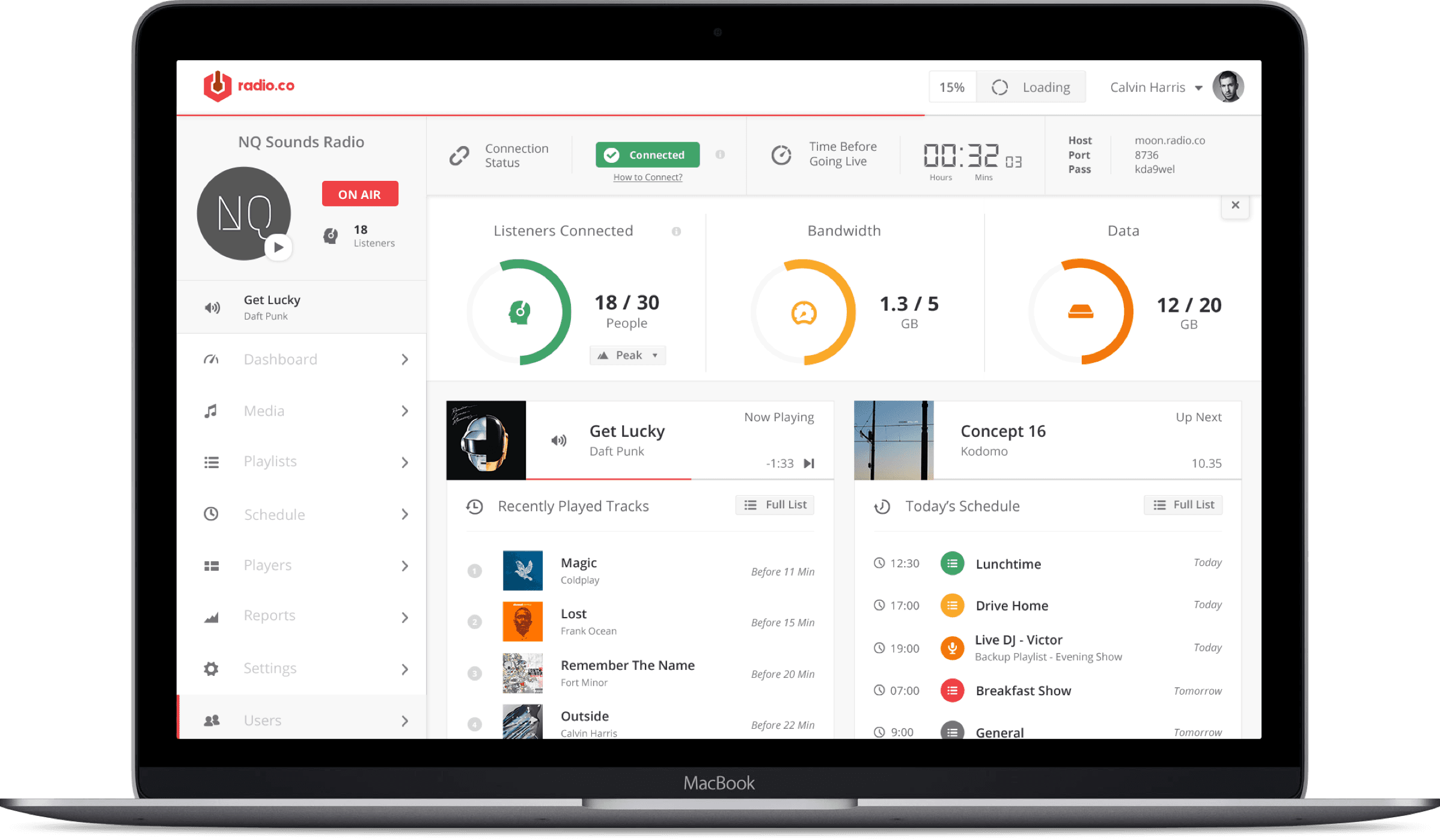 DJs could actually see the number of connected listeners at any time during their sets within the Radio.co Dashboard.