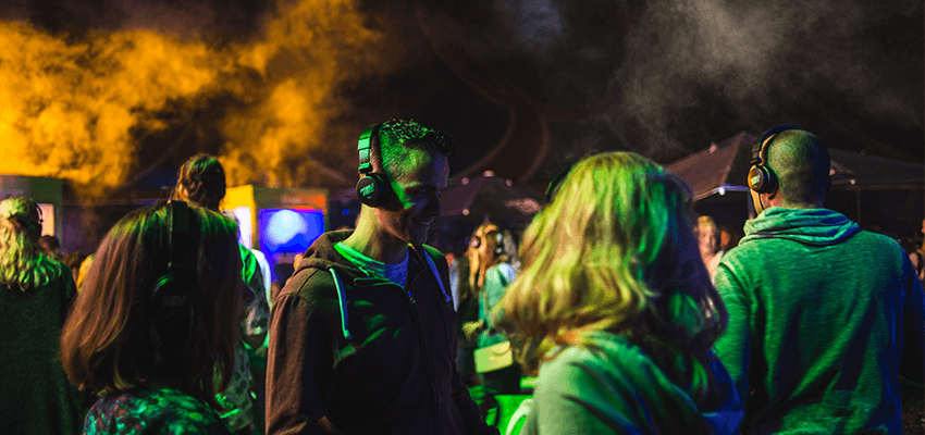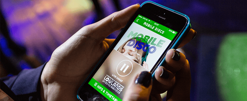 The internet radio station, where the mobile disco was broadcasting too, was embedded within the free mobile app which music festival goers could download and tune into the stream.