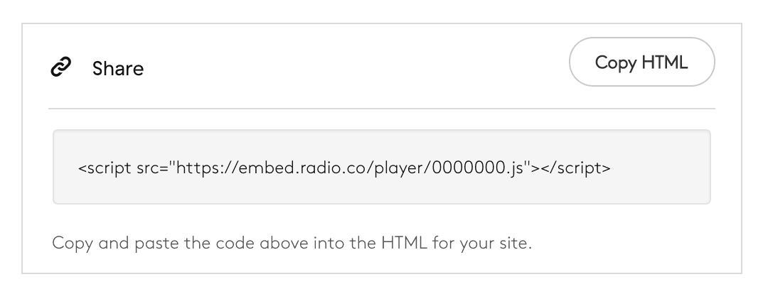 Share your player by grabbing the code in the 'Share' box and embed it into your site's HTML or within your CMS like WordPress.