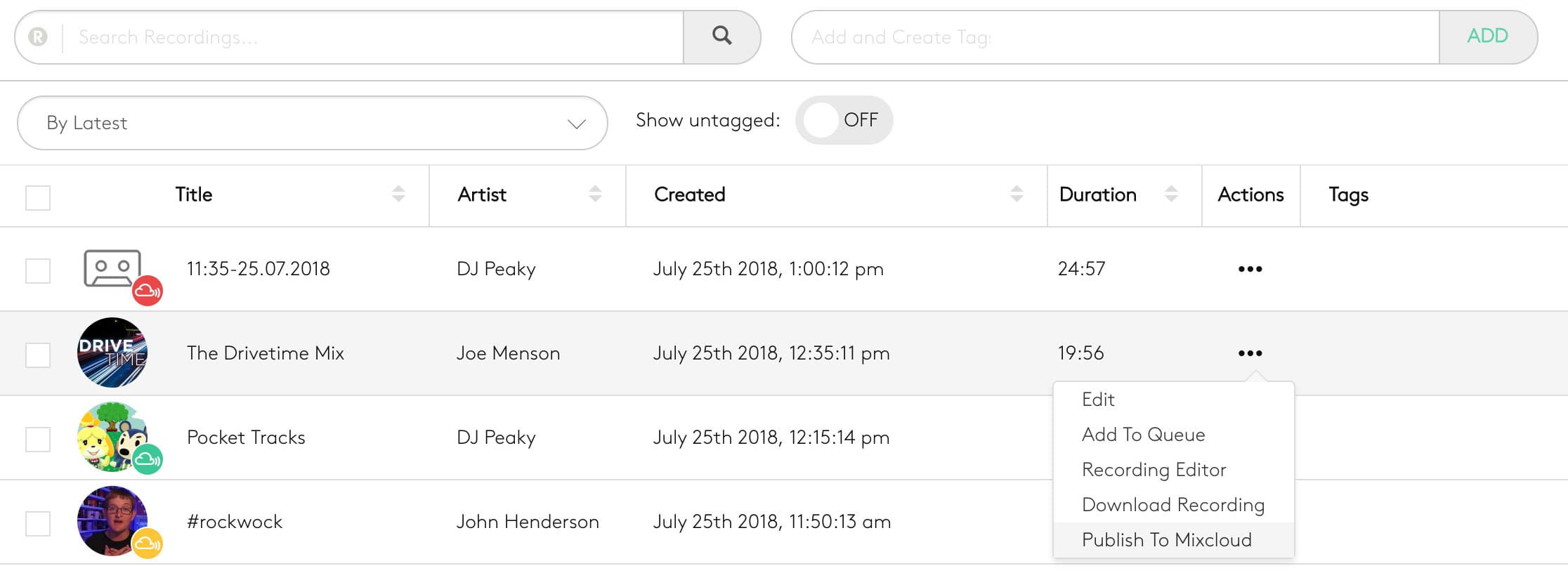 Next click the Actions (...) button again then Publish to Mixcloud.