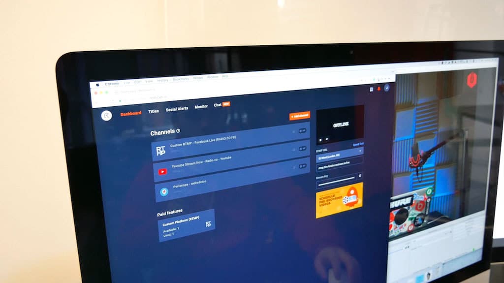 We use a piece of software called Restream which broadcasts our live feed to different platforms at the same time. In this case, that's Facebook and YouTube.