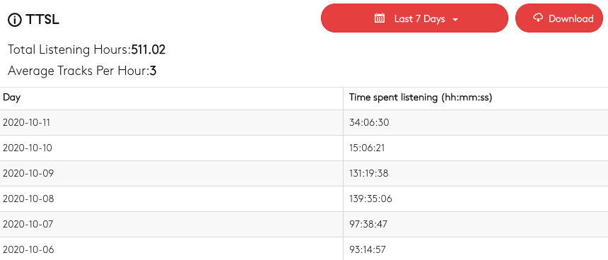 Track your station's performance by seeing how long your listeners have been tuned in for on a specific day.