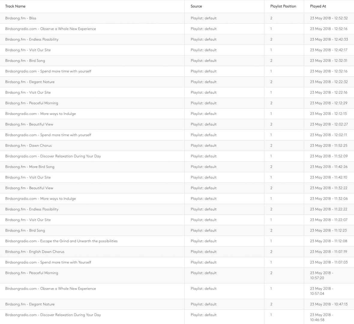 - See a list of every track played on your station in the specified time period.