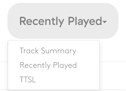 View comprehensive playout reports for tracking your station's playout for reporting purposes. View your track summary, recently played, or TTSL by selecting them from the drop-down menu.