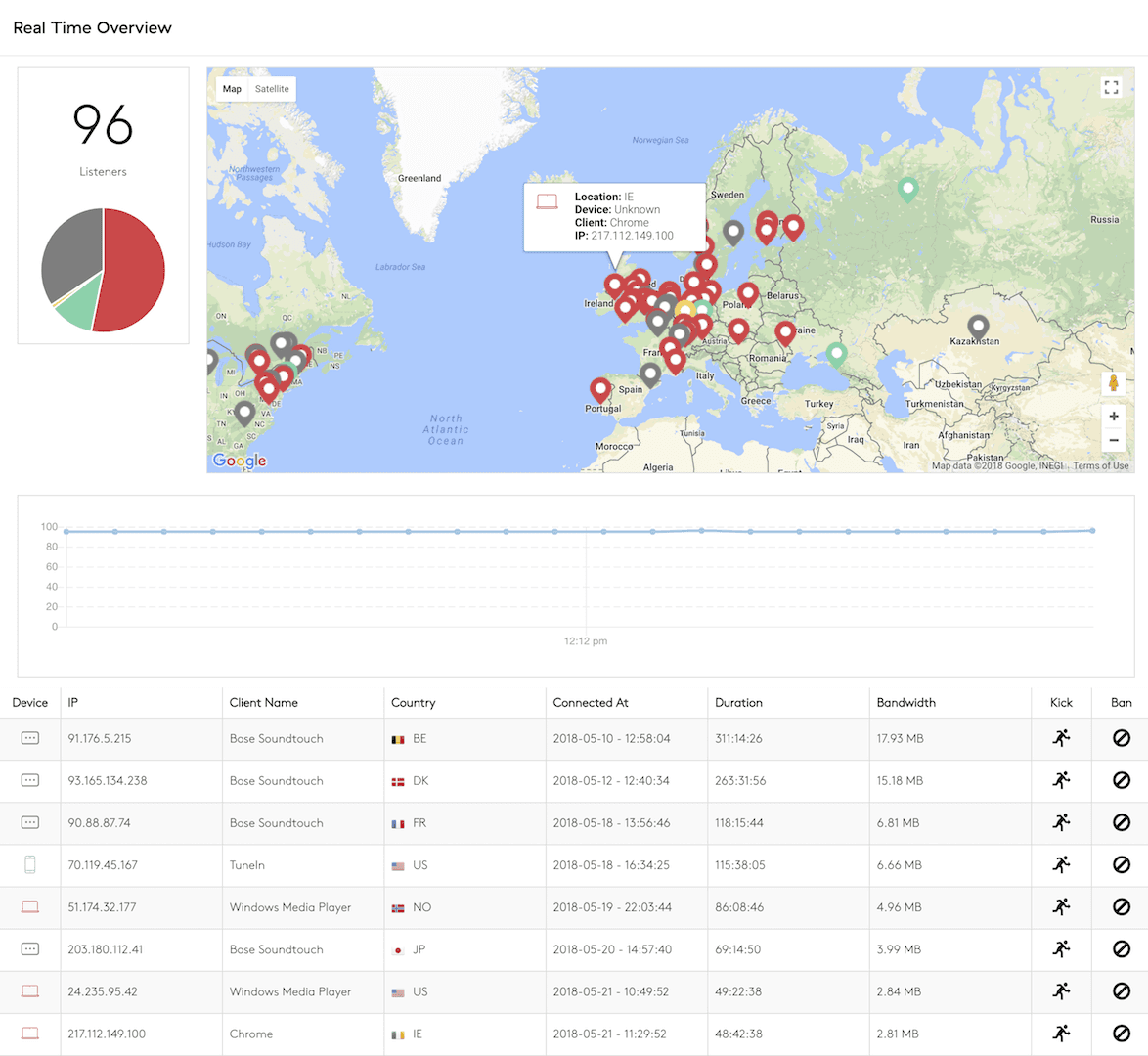 At a glance, discover who is listening to your radio station with every single concurrent connection.