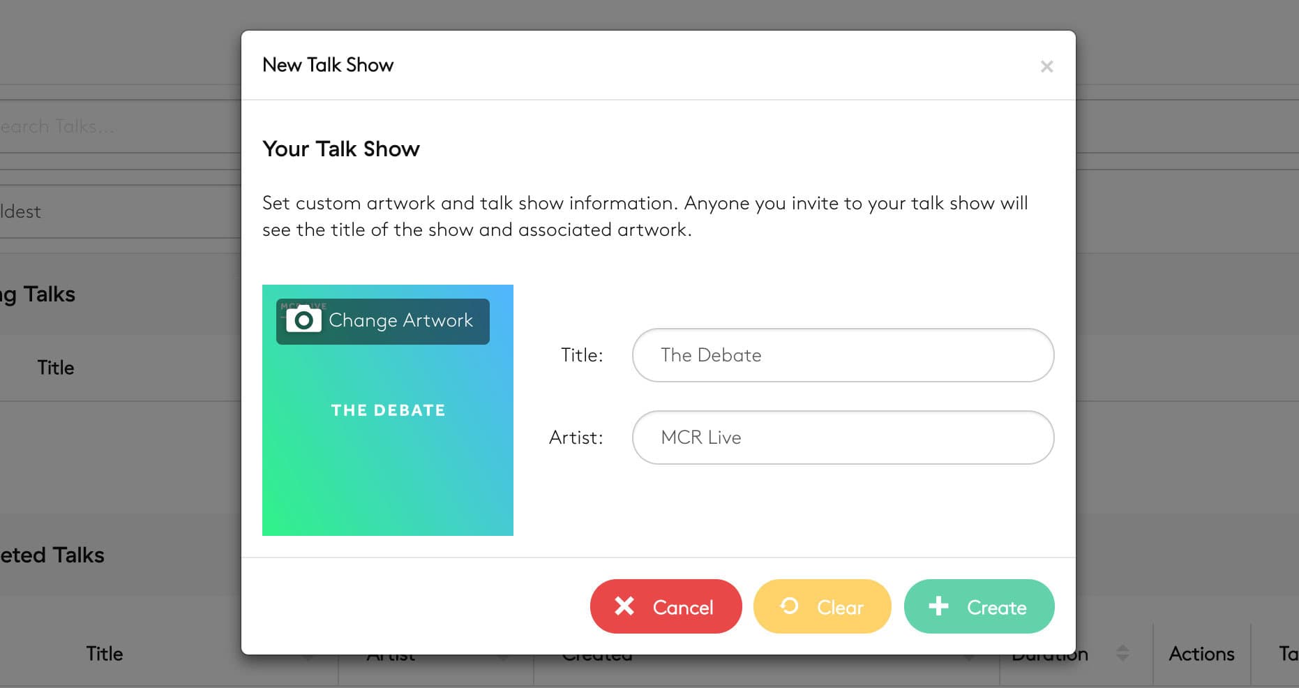 Click the green Create button to add your show to your station. This will appear under Pending Talks as shown below: