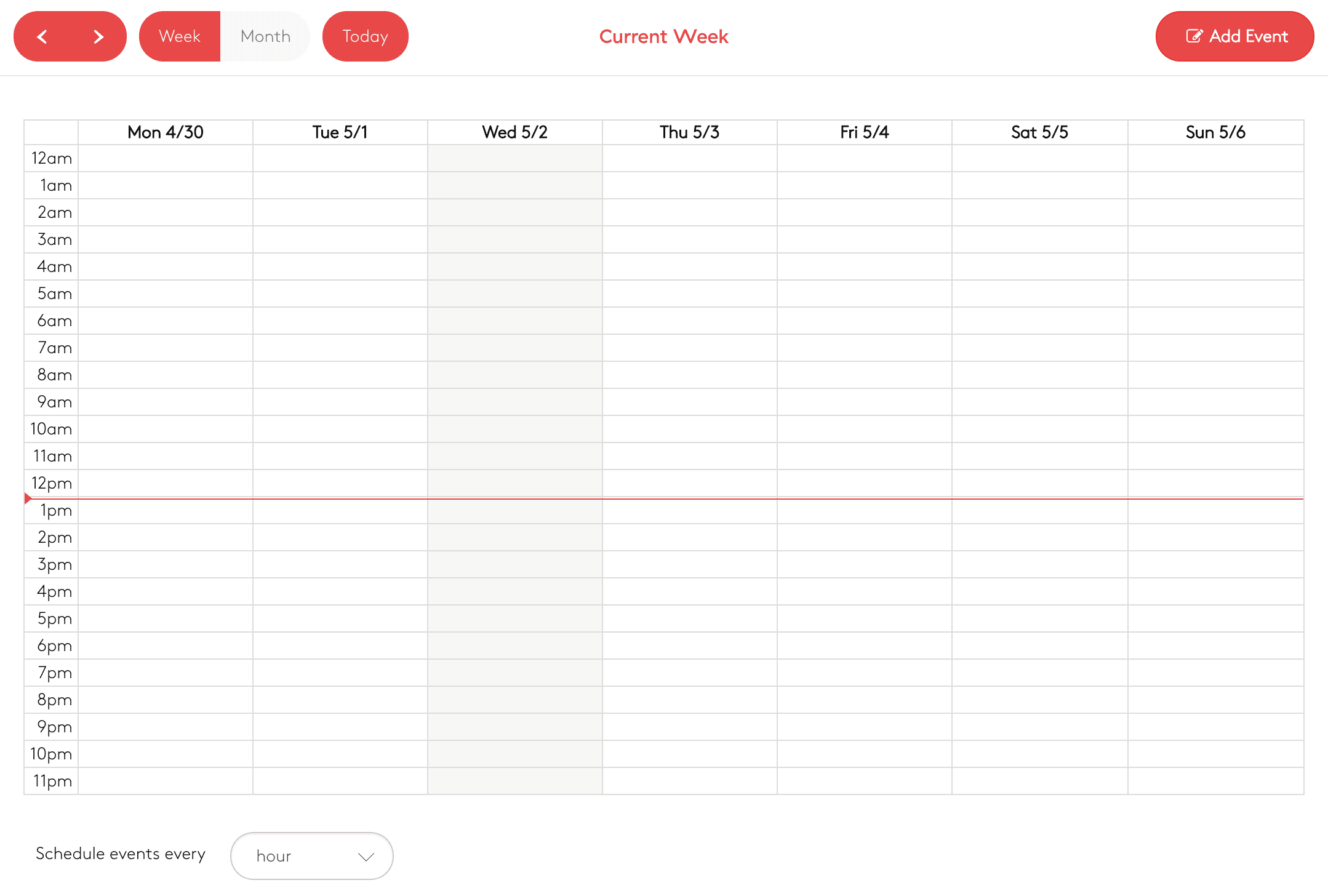 See a month overview of your schedule by clicking Month. Return to this week's view by clicking Today.