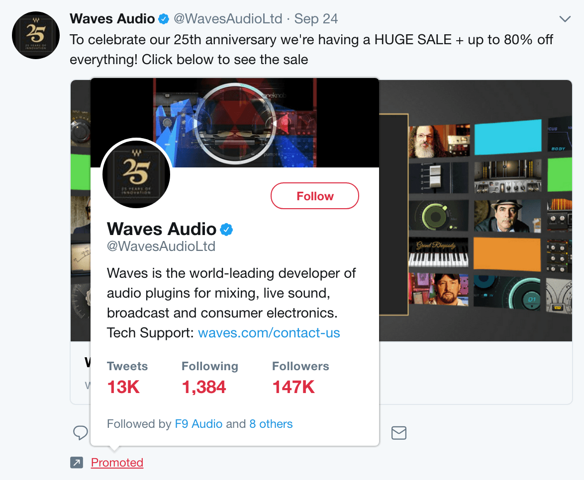 There are paid ways you can engage with listeners. Take targeted ads for example. Promote your messaging on places like Twitter and Facebook to relevant users. For example, as a broadcaster you might see promotions for audio equipment.