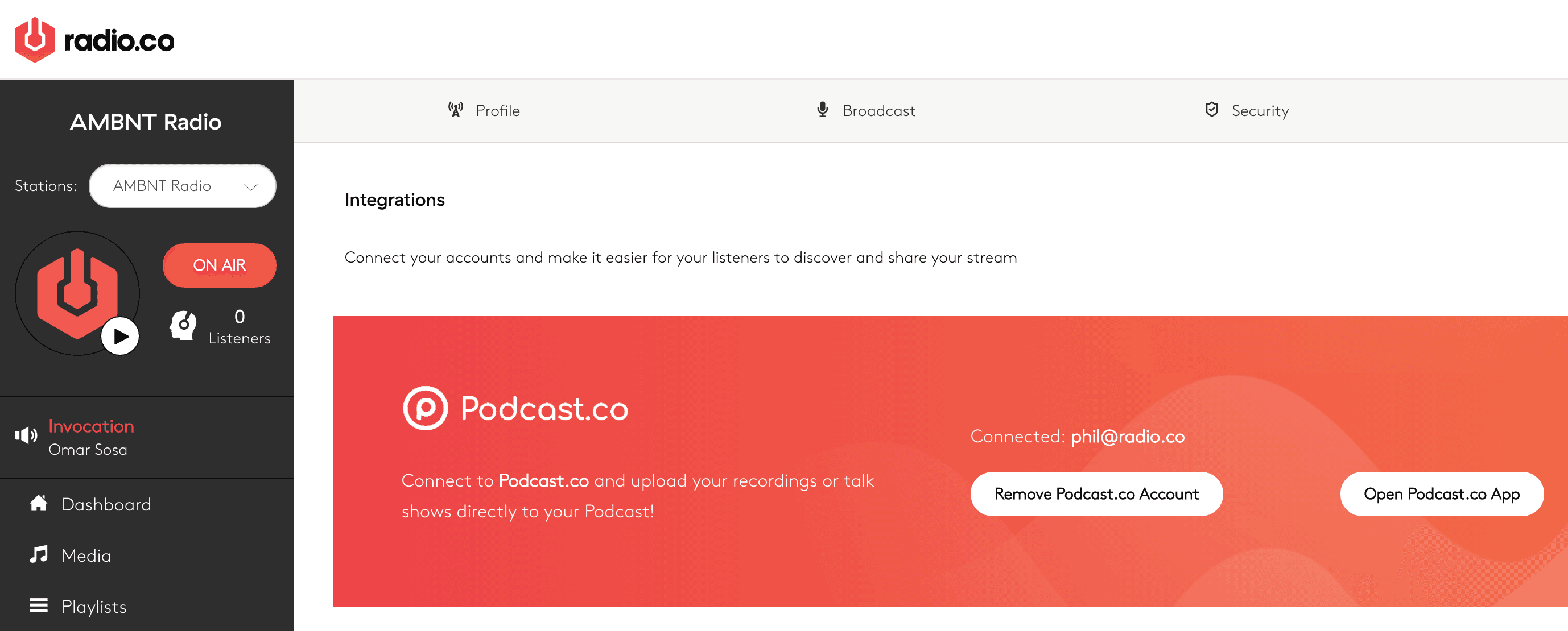 You can find the Podcast.co integrator in your Radio.co Dashboard under the 'Integration' options of your 'Settings'.