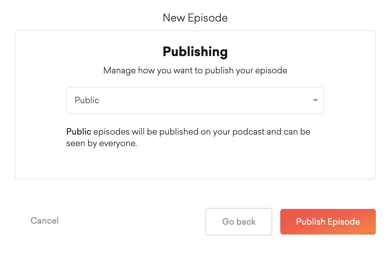 Simply log into your Podcast.co account and from your dashboard select âUpload Episodeâ, which will then prompt you to choose the file you wish to release. Once itâs uploaded itâll just need a name, brief description and episode number, so after thatâs been filled in youâll need to decide when you want to publish it.