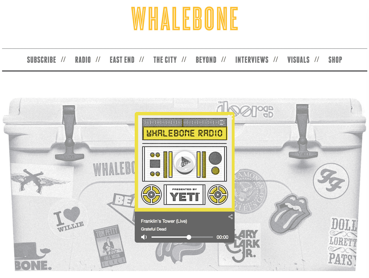 The point is, colours on your website are an extension of your brand. Take the time to pick a colour scheme and aesthetic that visitors will remember. Take Whalebone Magazine, a magazine and online store that run their own radio station. Yellow, white, and grey branding runs throughout the site, so it's consistent and feels like an experience rather than a disjointed mess.